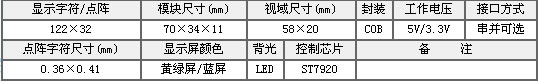 - 名稱:OCMJ12232C-3 藍(lán)白 3.3V