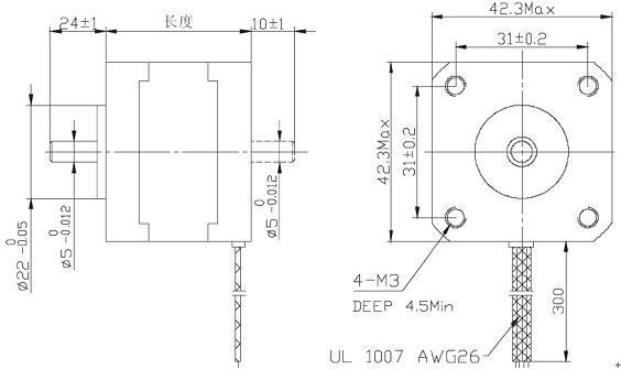 圖 1-3 42步進(jìn)電機(jī)尺寸圖